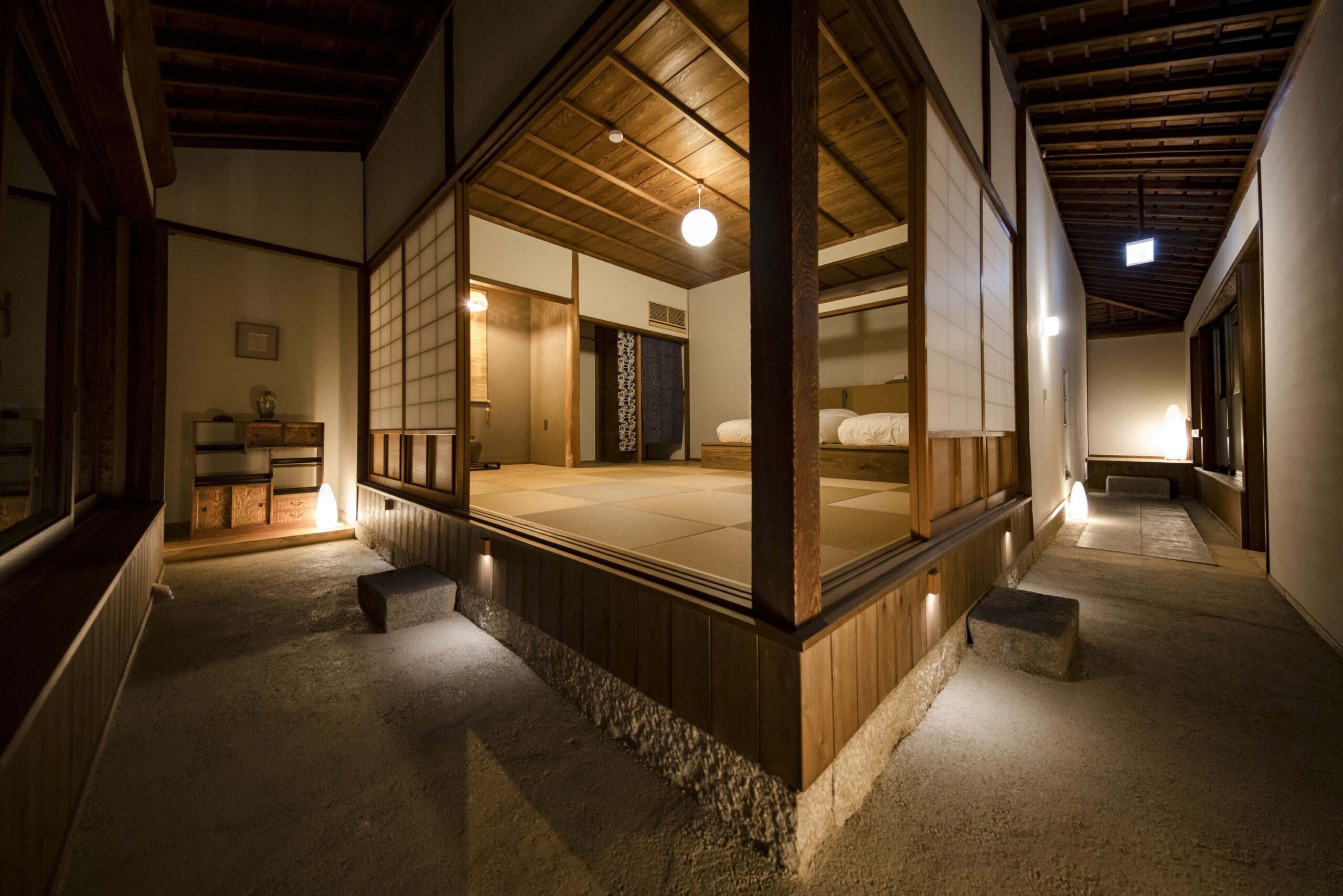 縁側でくつろいだり、中庭で月や星を眺めたり、蔵で地元のお酒を嗜んだり、島の暮らしを身近に体験できます。